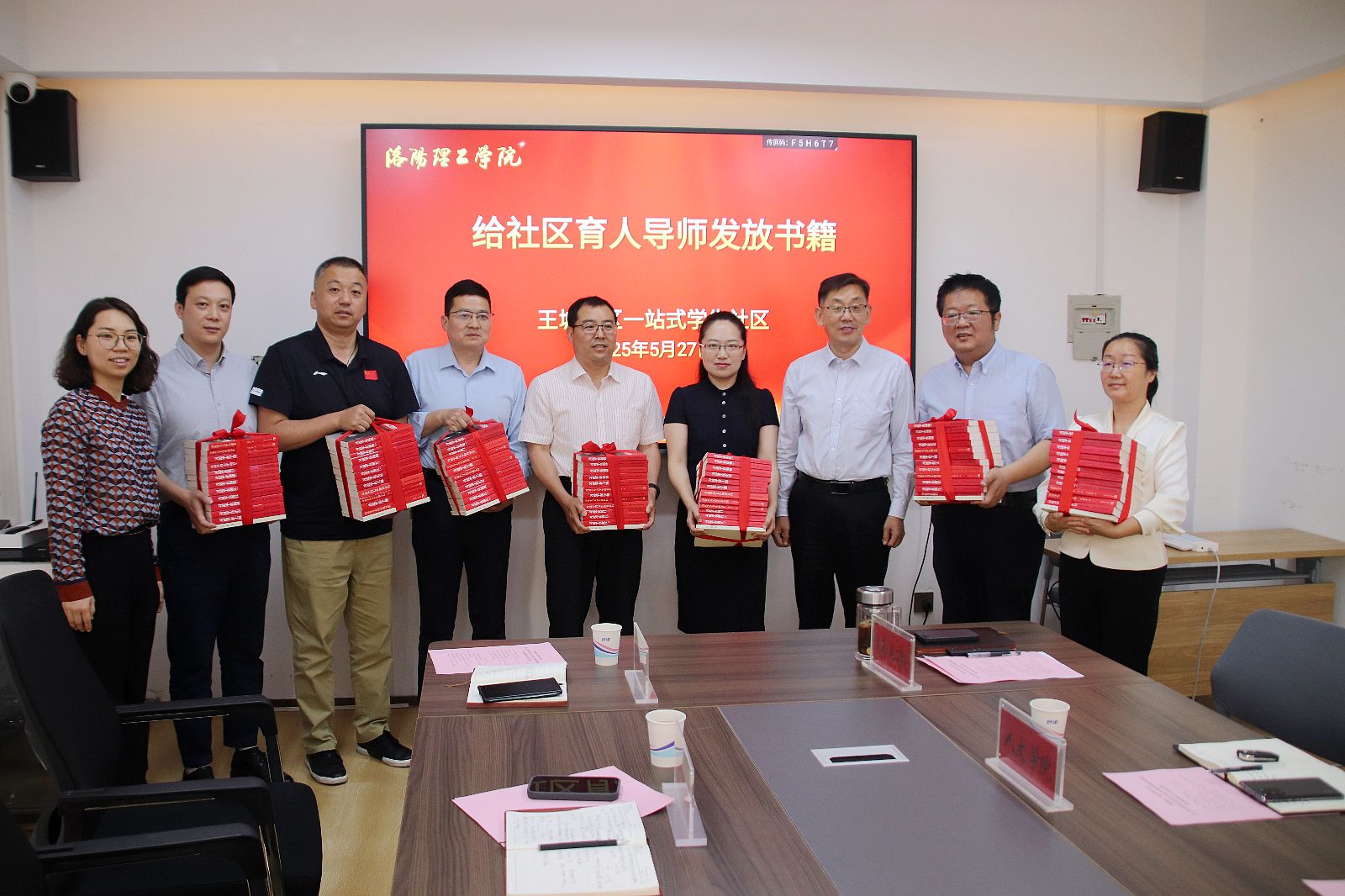 交流分享结束后,胡恩立为社区育人导师发放学习书籍。