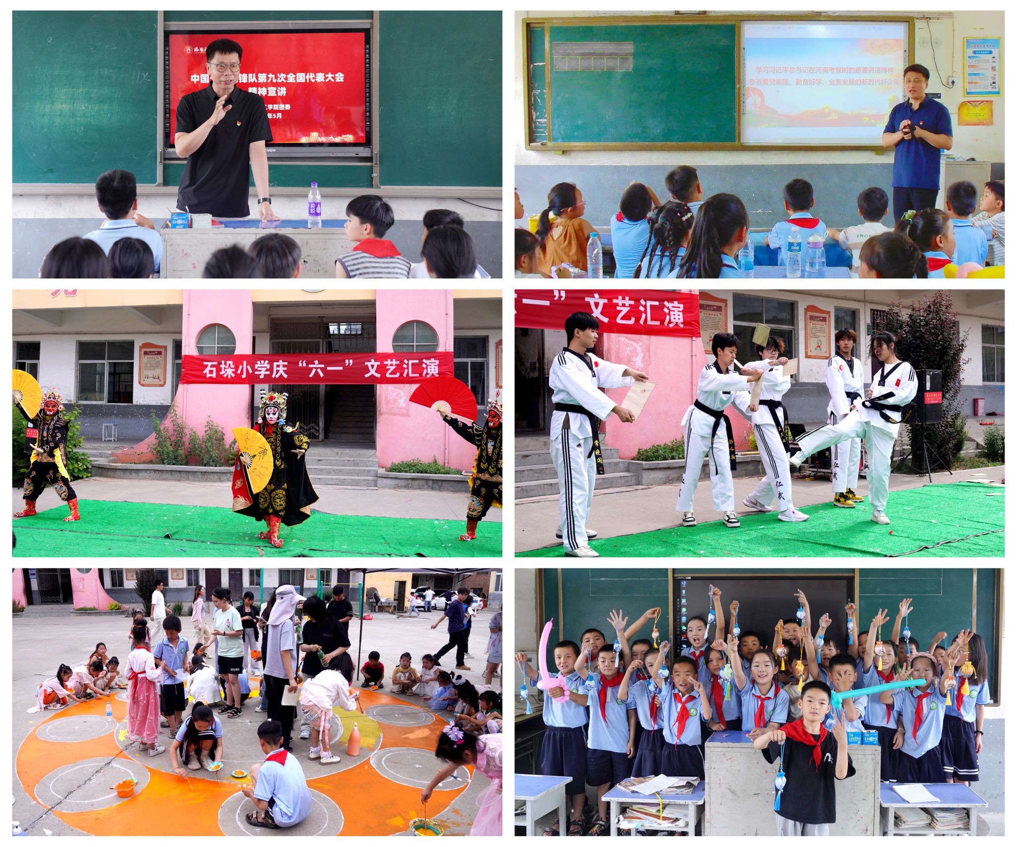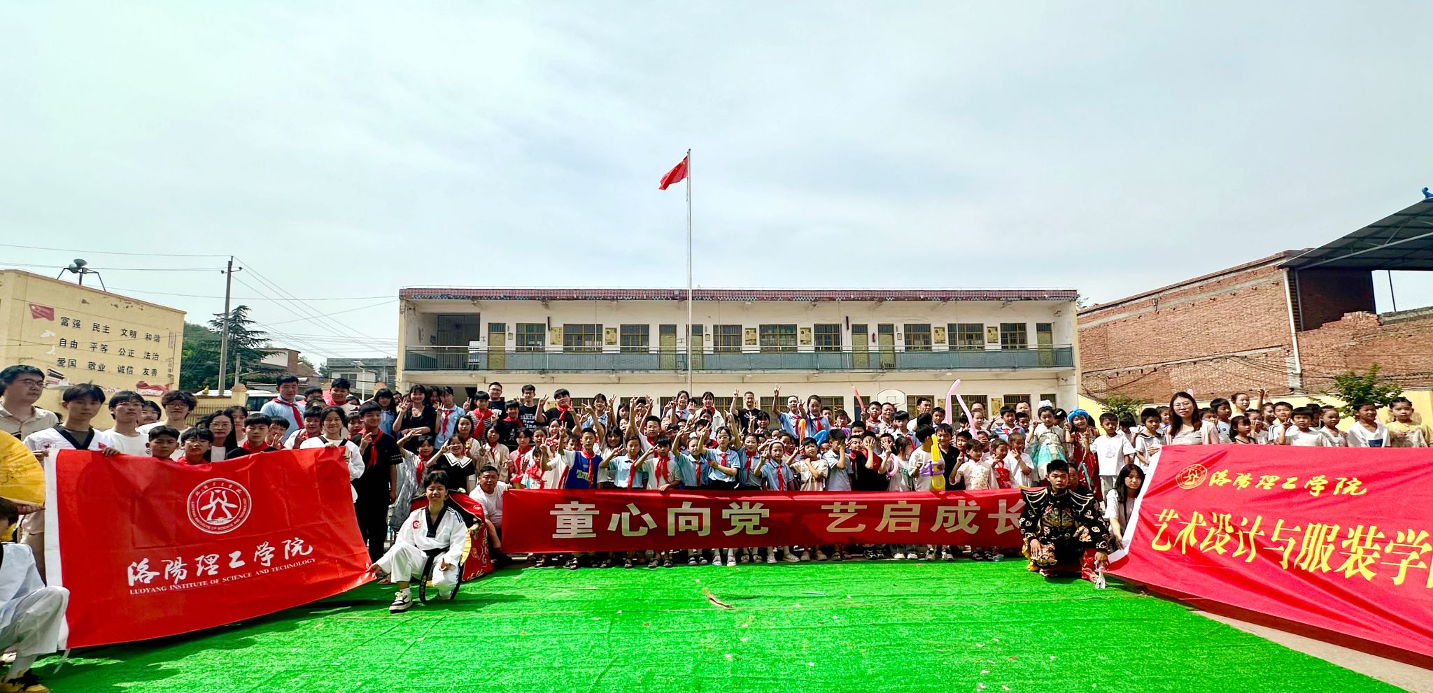 在六一国际儿童节来临之际,5月30日,校团委、艺术设计与服装美高梅娱乐场 、青年志愿者约50名师生赴美高梅娱乐场 定点帮扶的宜阳县白杨镇石垛村石垛小学开展“童心向党,艺启成长”庆“六一”系列活动,通过理论宣讲、文艺演出、民俗体验、艺术教育等方式为小朋友送去祝福和慰问。