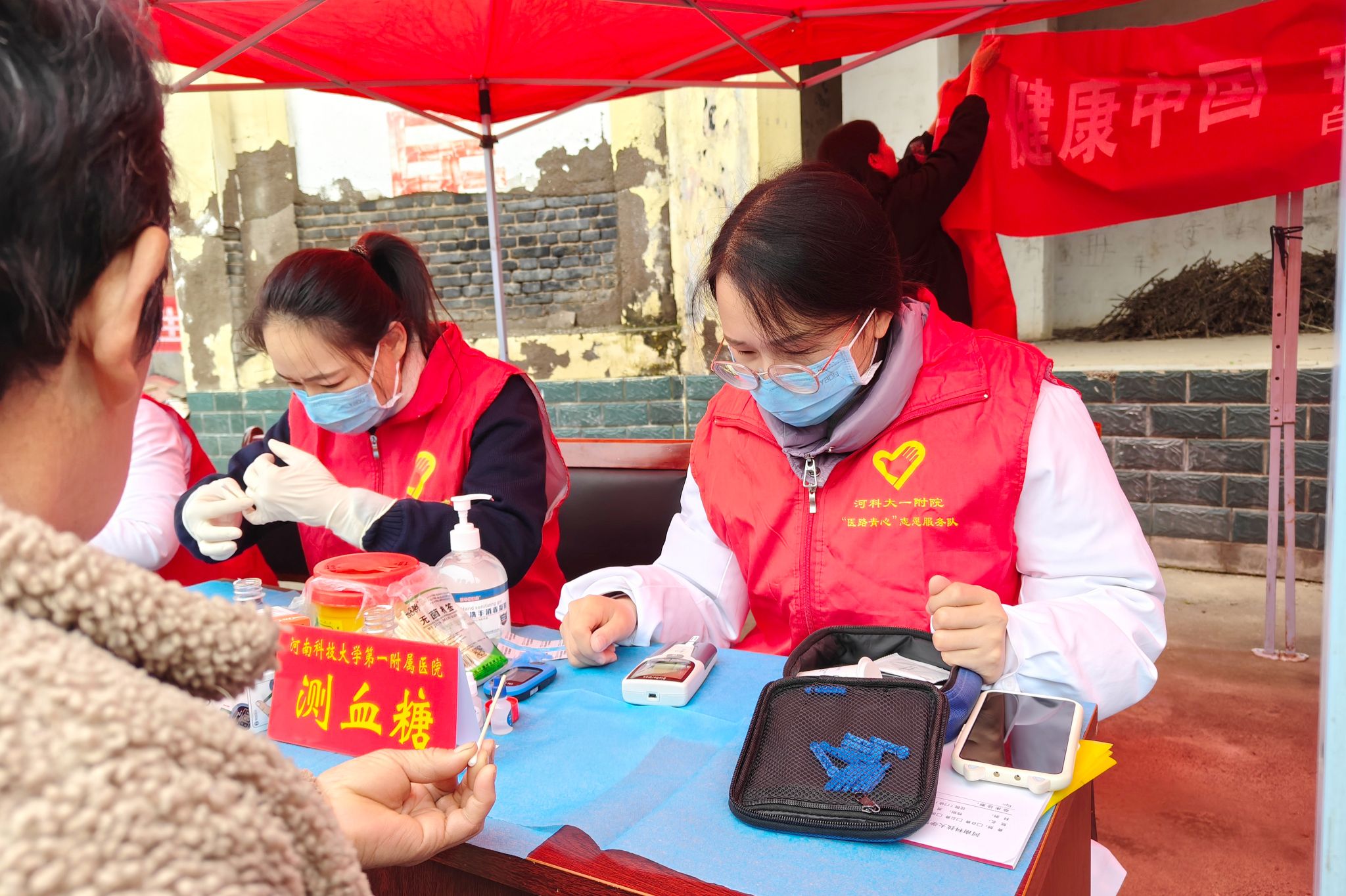 本次义诊团队由神经内科、心内科、疼痛科等9个科室的16名医疗专家和12名志愿者组成,携带B超机、心电图仪、血糖检测设备等专业仪器,为诊疗准确性提供硬件支持。团队专家们面向 200 余名村民开展“一对一”健康服务,结合现场检查结果,定制个性化治疗建议,让村民们无需奔波即可享受优质医疗资源。志愿者们在活动现场发放医保政策宣传册,普及“三减三健”健康管理知识。