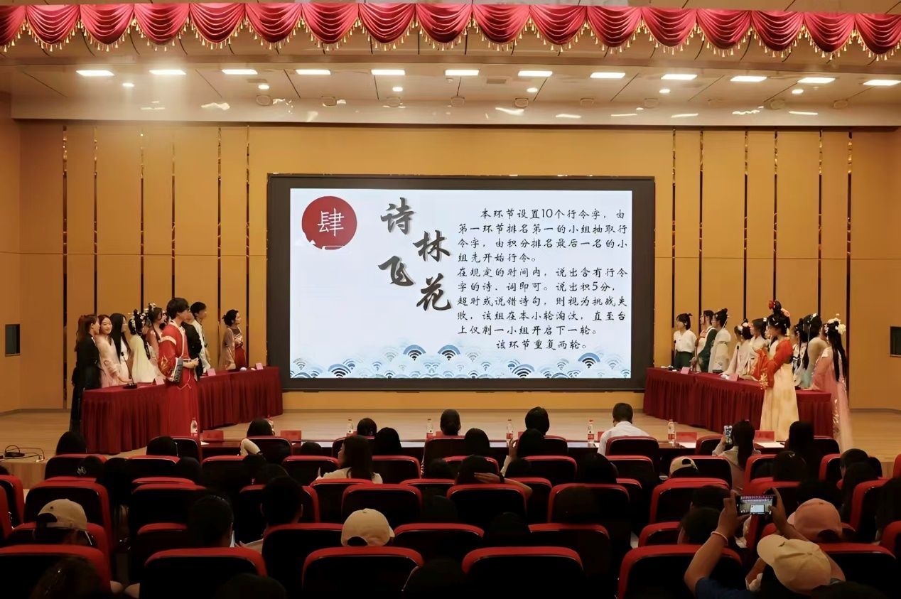 由华章汉服社和三位外教老师共同表演的《江上清风游》汉服展示拉开了活动序幕,在缓缓乐声和翩翩衣袂中,我们感受到了那份中华文化中独有的古朴典雅、飘逸灵动。此次活动共分为“智海争渡”“火眼金睛”“文思竞逐”“诗林飞花”四个环节,通过累积积分决出一、二、三等奖。