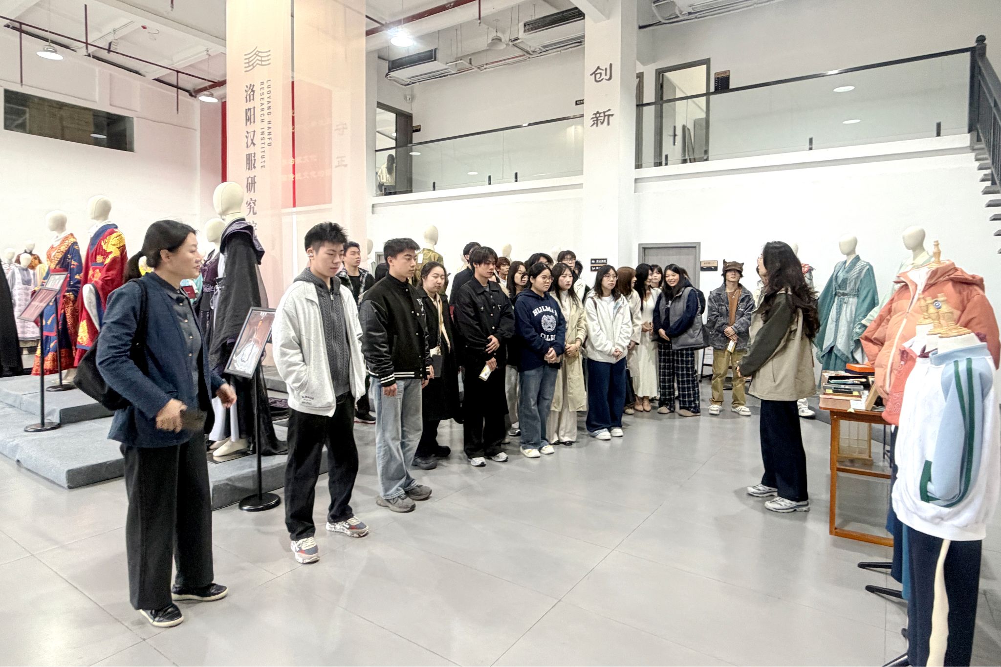 组织学生赴洛阳汉服研究院开展汉服文化研学实践课,通过沉浸式、多环节的体验设计,为学生搭建起一个近距离感受传统服饰技艺的实践教学平台。