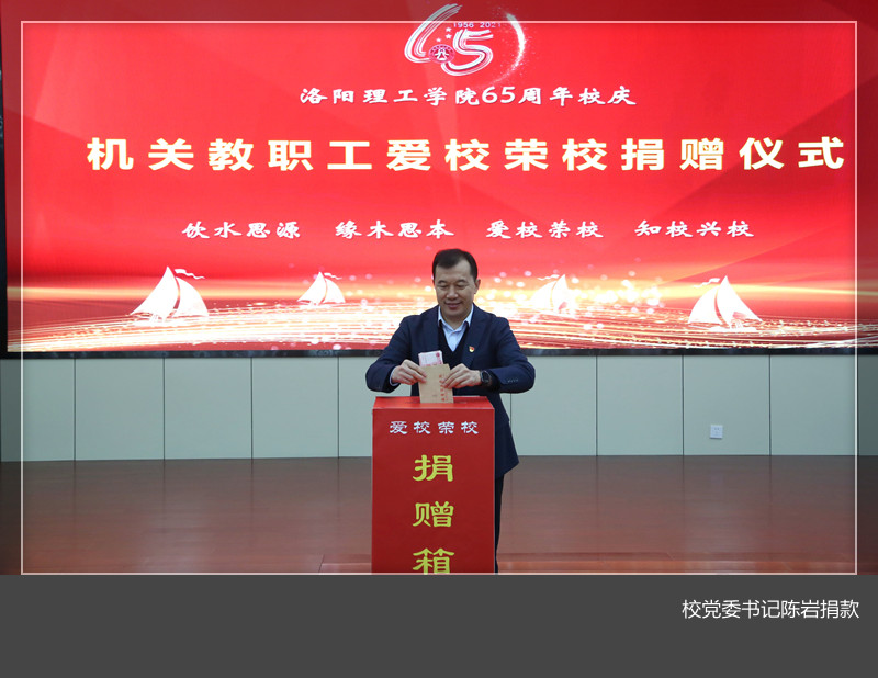 在王城校区办公楼二楼报告厅举行机关教职工65周年校庆爱校荣校捐赠仪式。校领导和机关全体教职工参加了捐赠仪式。