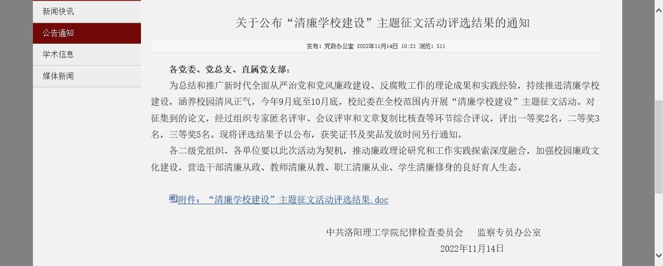 近日,校纪委/监察专员办公室公布美高梅娱乐场 “清廉美高梅娱乐场 建设”主题征文活动评选结果,机关党委报送、第五党支部胡旭宁、王锴、王增光等三位同志撰写的《高校年轻干部教育管理监督路径探析》论文荣获一等奖。