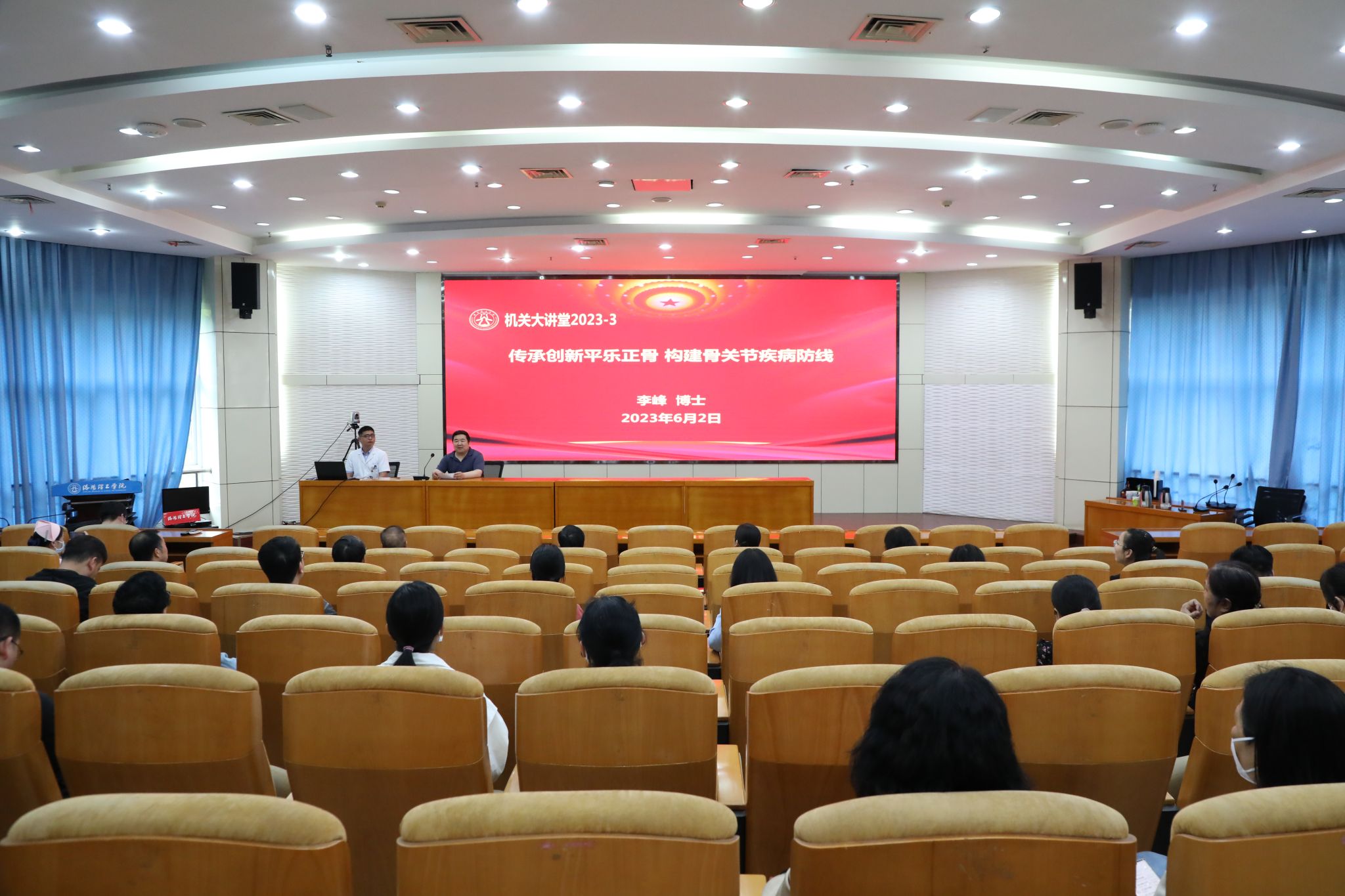 6月2日下午,机关党委在王城校区办公楼二楼报告厅举办了机关大讲堂2023-3期“传承创新平乐正骨 构建骨关节疾病防线”,邀请洛阳正骨医院骨科专家李峰博士前来作骨关节病预防科普讲座。机关各部门教职工参加,机关行政工会主席李玉林主持大讲堂。