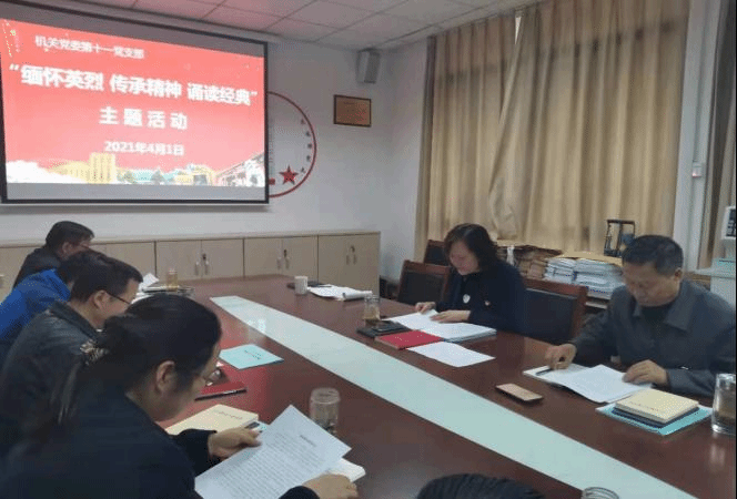 机关党委第十一党支部4月1日下午在办公楼120房间组织开展“缅怀英烈、传承精神、诵读经典”主题活动。全体党员为革命先辈、先烈默哀缅怀,诵读电影散文《谁是最可爱的人》。