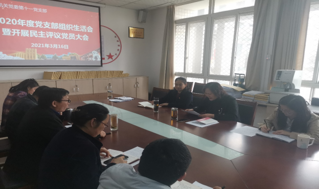 2021年3月16日下午,机关党委第十一党支部在行政办公楼120房间召开2020年度党支部组织生活会和开展民主评议党员大会,机关党委书记田丽霞到会指导,全体党员参加会议,会议由党支部书记邹丽主持。