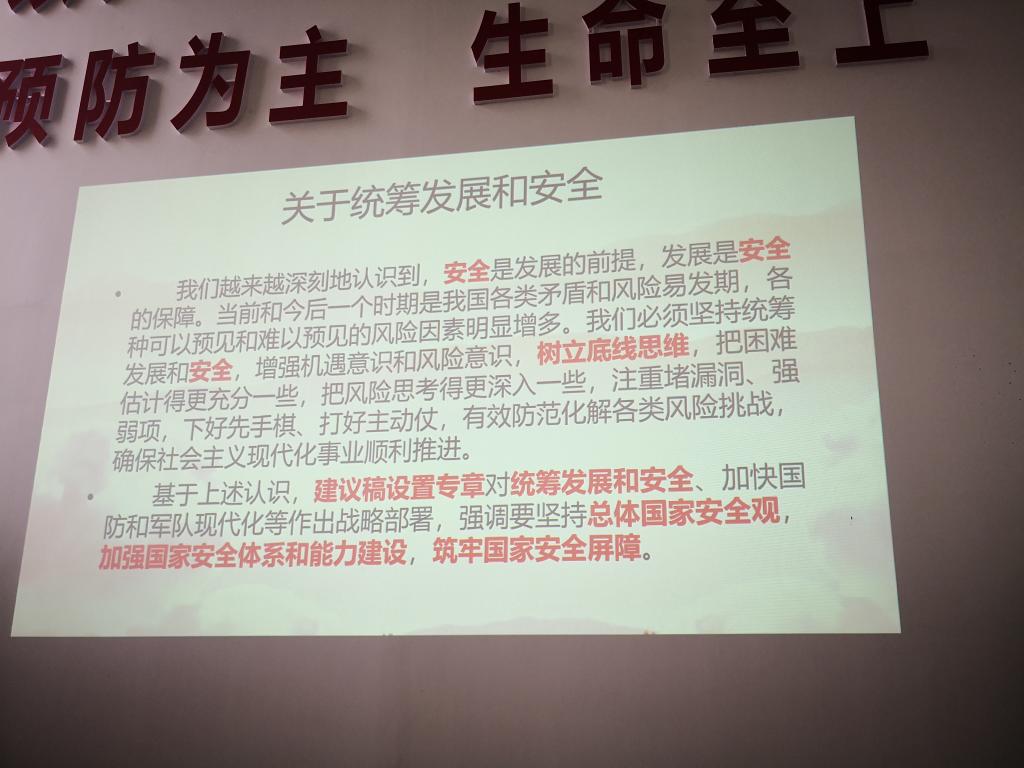 为深入学习贯彻党的十九届五中全会精神,进一步统一党员思想、凝聚共识,提高机关第十四支部党员干部思想素质,按照领导干部上党课制度要求,11月17日下午,支部书记张克胜同志就学习贯彻党的十九届五中全会精神讲为大家上了一堂题为《守护安全底线,科学谋划发展---贯彻落实十九届五中全会精神》的专题党课,支部全体成员聆听了党课。