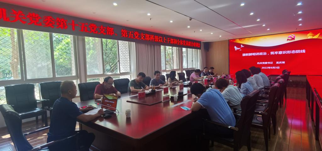 6月2日下午,机关党委第十五党支部、第五党支部在王城校区办公楼116会议室联合开展科级以上干部和全体党员培训。