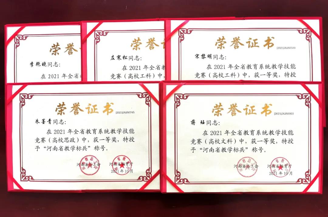近日,河南省教育厅公布了2021年河南省”教学技能竞赛“的获奖单位及个人,机关科研处宋黎明老师荣获一等奖,被授予“河南省教学标兵”荣誉称号并颁发奖章。