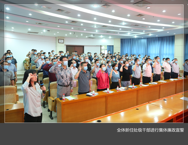 党委书记卢爱新、后勤管理处副处长兼物业服务中心经理刘晓斌先后作表态发言;全体新任处级干部观看了廉政教育警示片,进行了集体廉政宣誓,并现场签订了《任期廉洁履职承诺书》。(宣传教育科 胡旭宁)