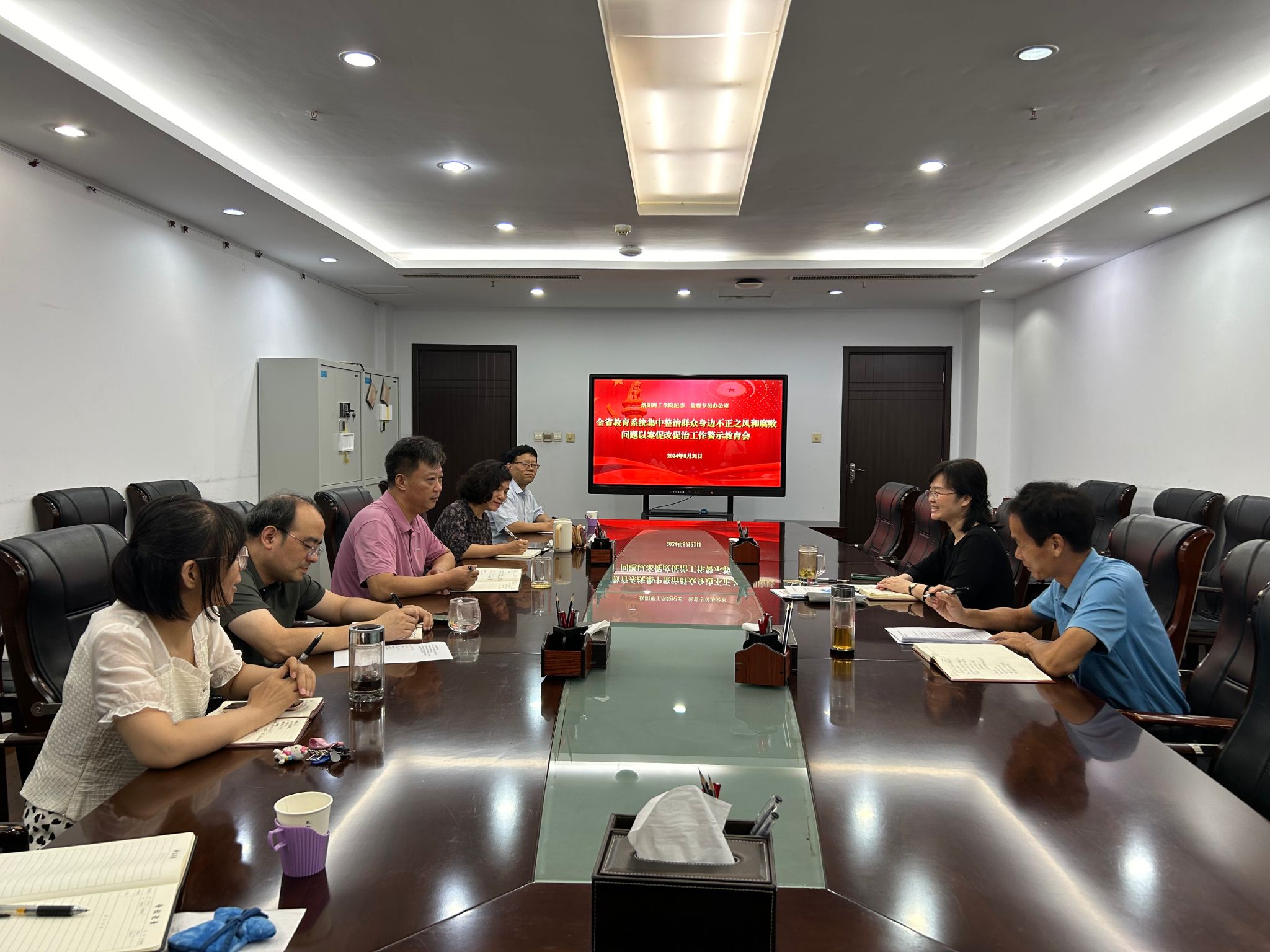 8月31日下午,校纪委在王城校区办公楼220会议室召开群众身边不正之风和腐败问题以案促改警示教育会,通过以案为鉴、以案示警,进一步加强以案促改、以案促治,持续推进集中整治群众身边不正之风和腐败问题工作走深走实。全体纪检监察干部参加了会议。