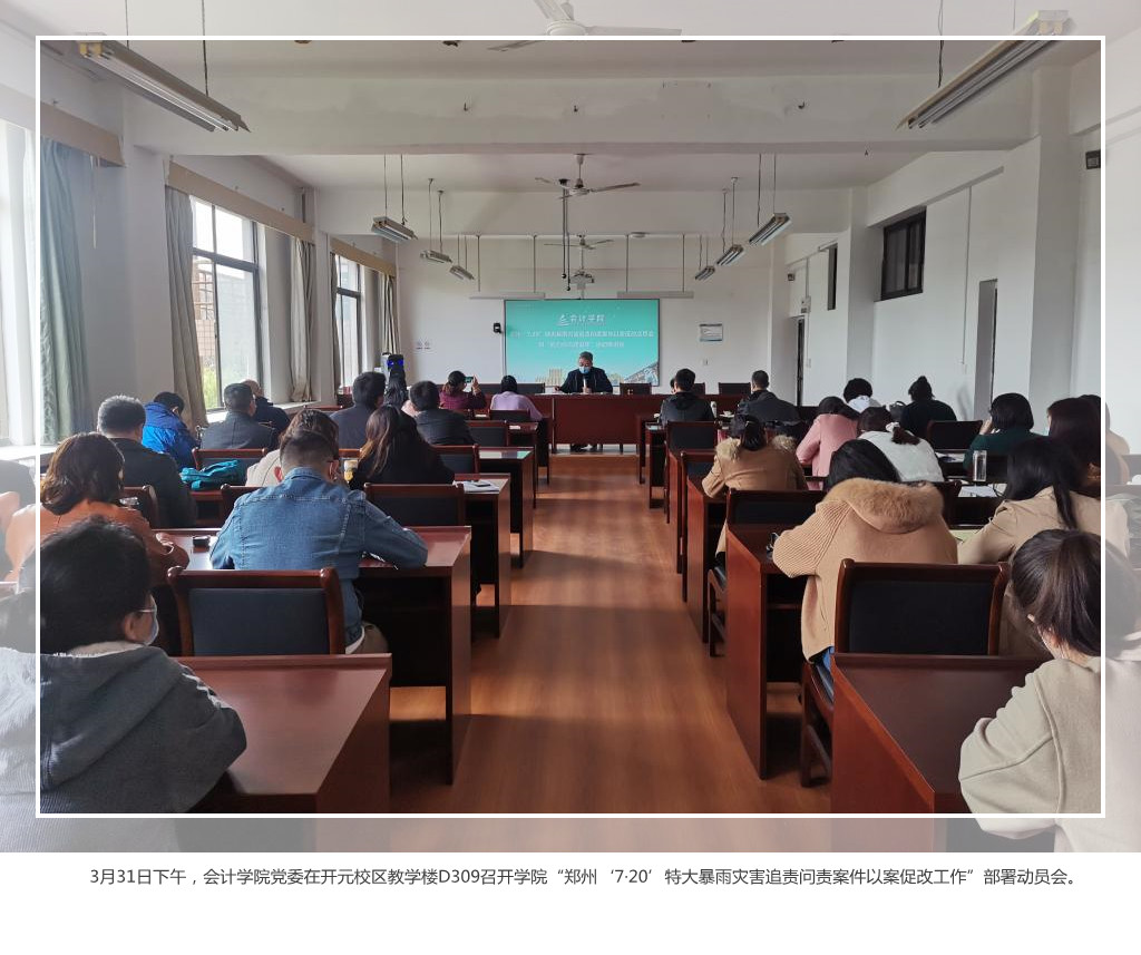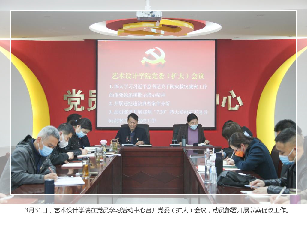 根据省委教育工委、教育厅党组开展郑州“7·20”特大暴雨灾害追责问责案件以案促改工作相关要求,依照美高梅娱乐场 “7•20”特大暴雨灾害追责问责案件以案促改工作会议精神,各二级党组织陆续召开会议,传达《美高梅娱乐场 开展郑州“7.20”特大暴雨追责问责案件以案促改工作方案》精神,就以案促改工作的组织开展、时间安排、方法步骤和有关要求等方面作了具体安排。