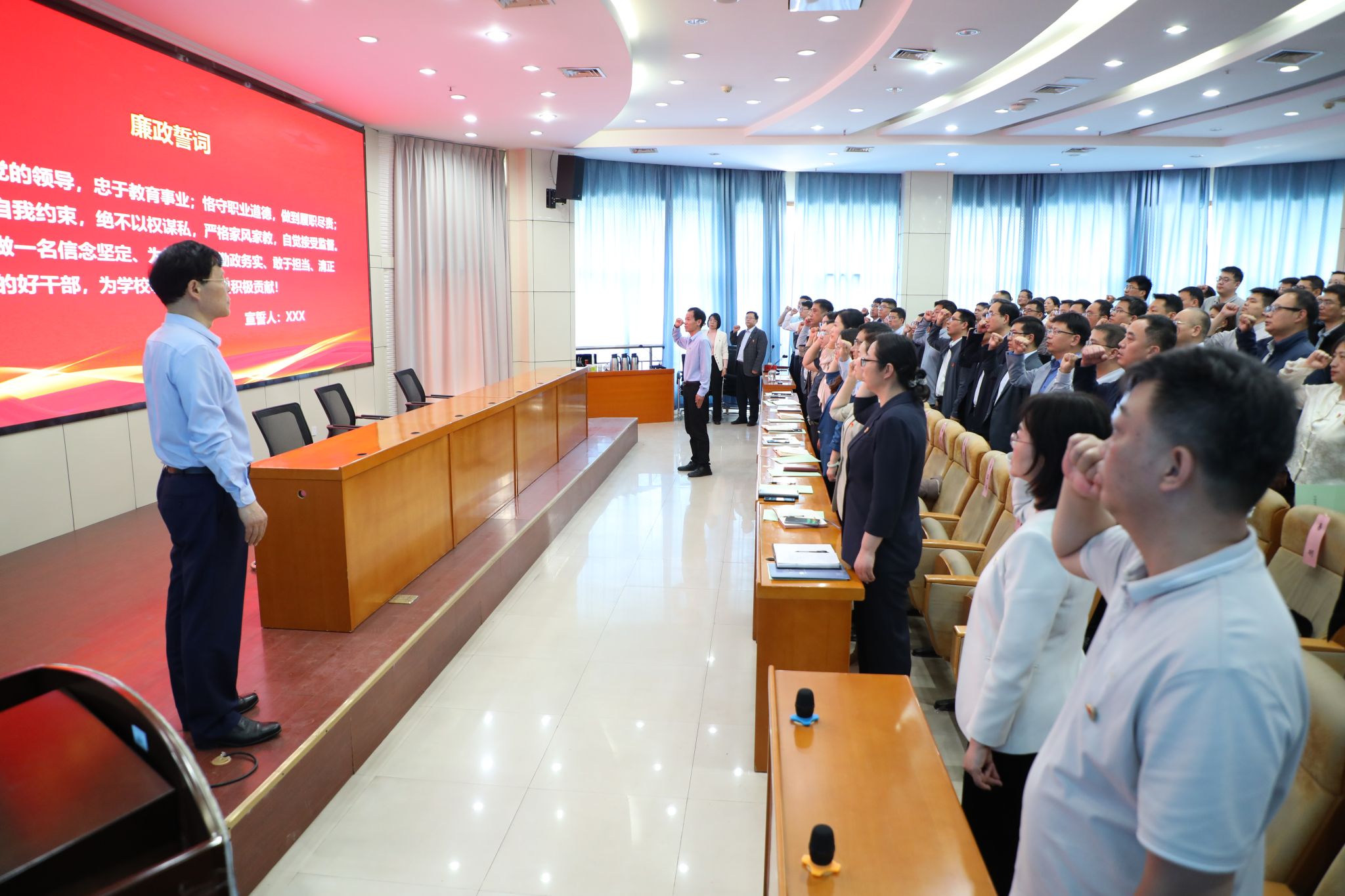 会上,新任处级干部代表作表态发言;全体新任处级干部观看了廉政教育警示片,进行了集体廉政宣誓,并现场签订了《任期廉洁履职承诺书》。(来源: 宣教科)