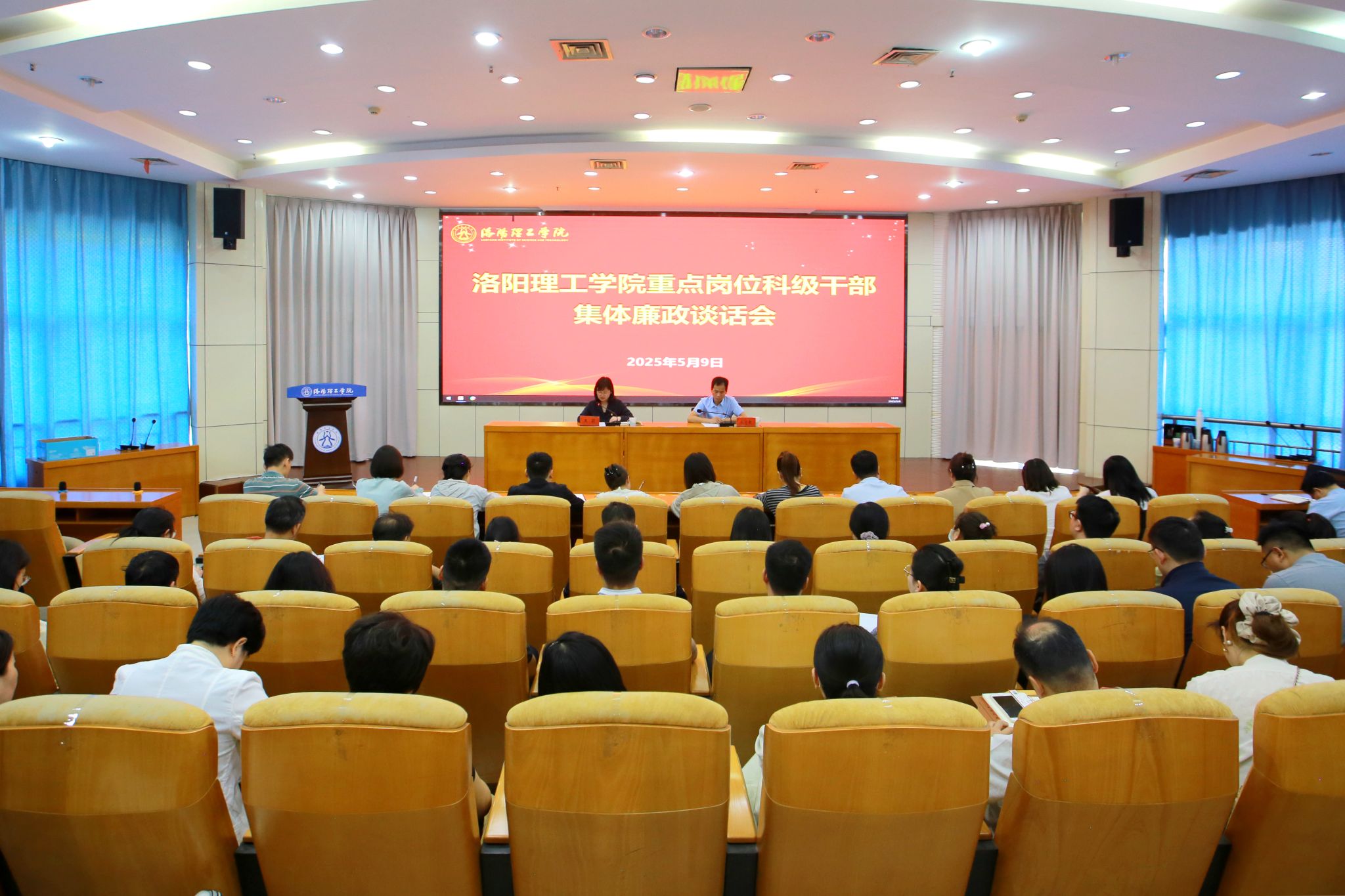 5月9日下午,校纪委在王城校区办公楼二楼报告厅召开重点岗位科级干部集体廉政谈话会,校纪委副书记、纪检监察室主任王莉作集体廉政谈话,全校70名重点岗位科级干部参加了会议。会议由校纪委副书记、综合室主任水付新主持。