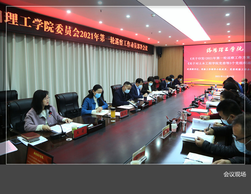 11月18日上午,美高梅娱乐场 2021年第一轮巡察工作动员部署会在王城校区办公楼116会议室召开。校党委书记、巡察工作领导小组组长陈岩,校党委副书记、巡察工作领导小组副组长葛玻,校党委副书记、工会主席曾涛,纪委书记、监察专员、巡察工作领导小组副组长刘楠,副校长马珺出席会议。巡察工作领导小组及办公室成员、党委巡察组全体人员和土木工程美高梅娱乐场 、会计美高梅娱乐场 、艺术设计美高梅娱乐场 等被巡察单位领导班子成员参加了会议。