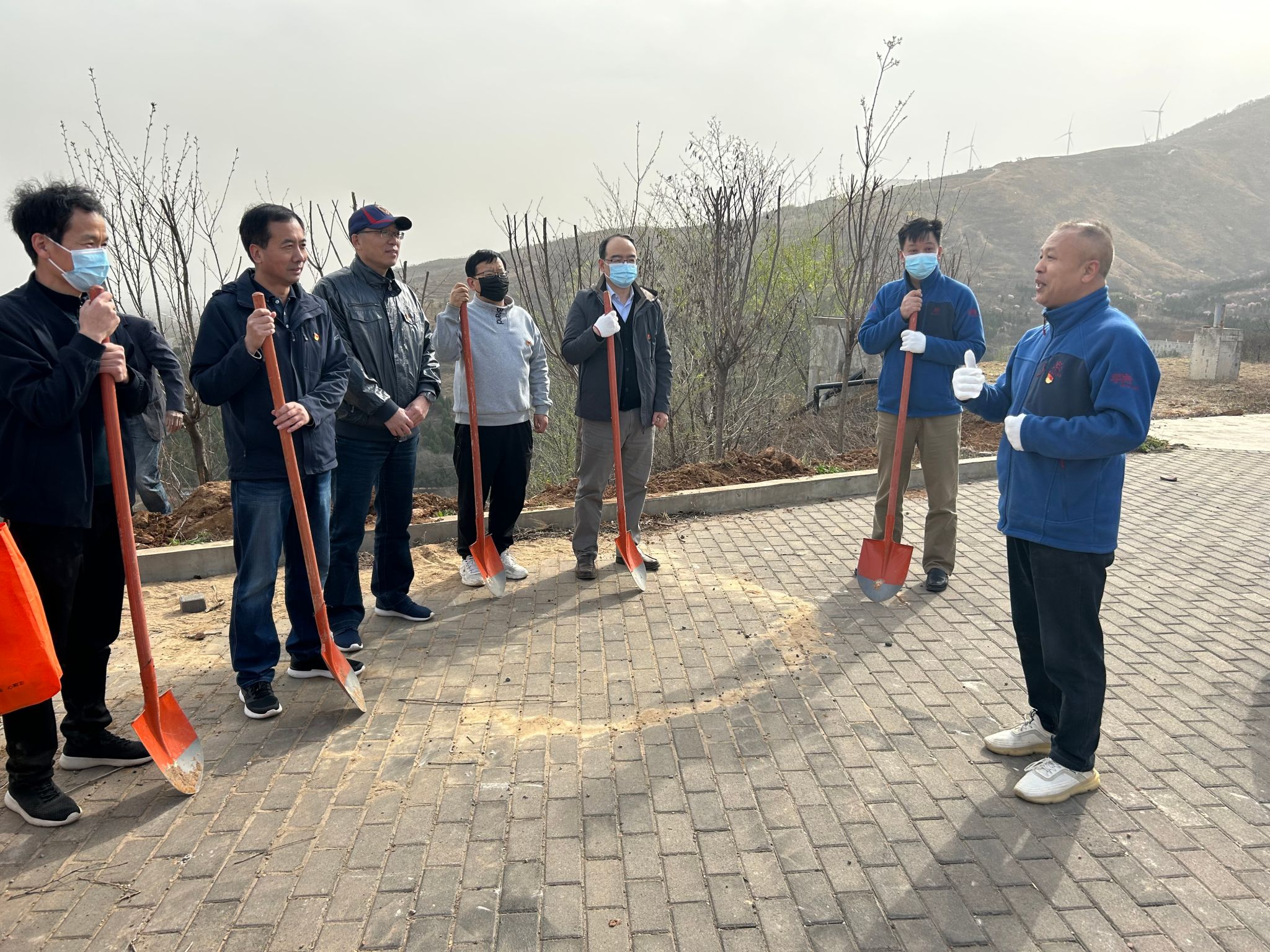 阳春三月万物苏,植树播绿正当时。为践行“绿水青山就是金山银山”的发展理念,增强支部党员生态环境保护意识, 3月15日下午,机关党委第五党支部、第八党支部联合开展了“为青山增绿 为党旗添彩”义务植树主题党日活动。机关党委书记孟庆湖参加植树并对活动予以指导。