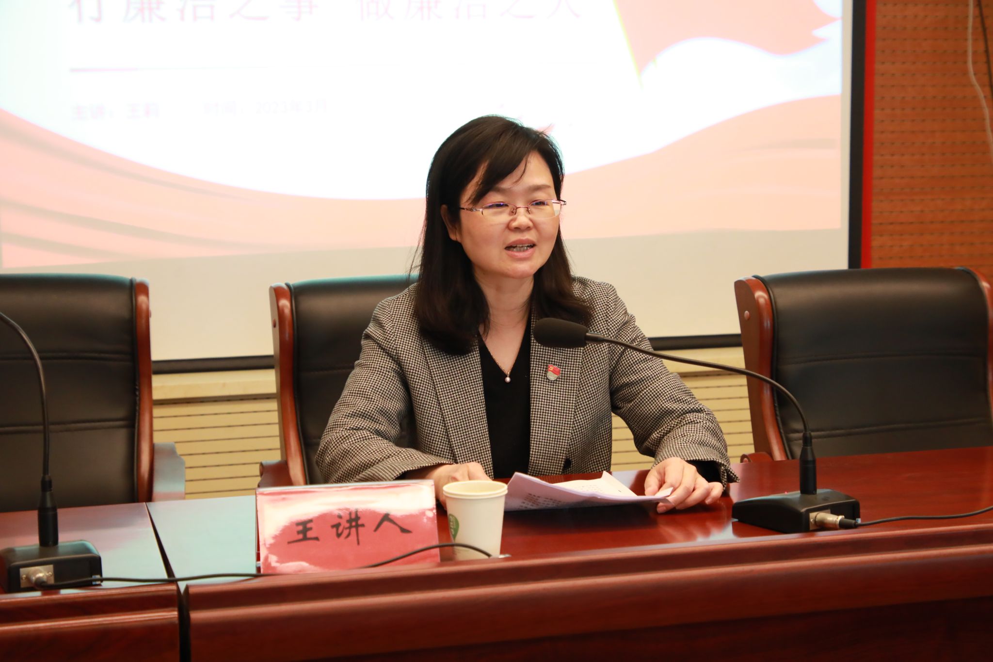 王莉同志以《怀廉洁之心,守廉洁之门,行廉洁之事, 做廉洁之人》为题讲授了廉政党课,从坚定理想信念、敬畏党纪法规、树牢宗旨意识、坚守廉洁底线等四个方面,深刻阐明了全面贯彻党的二十大全面从严治党战略部署的重要意义,并结合授课对象工作实际,选取多起基层党员干部违纪违法典型案例进行宣讲,教育引导与会人员树立正确的权力观、利益观,把握好政商交往的公私界限,时刻都要清醒坚定、坚守本心,自觉提升“拒腐防变”能力。