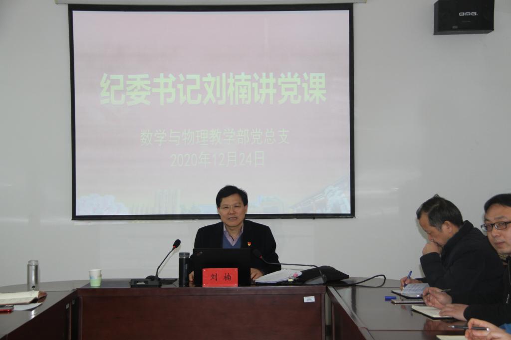 12月24日下午,纪委书记、监察专员刘楠在图书馆917会议室以“坚持以人民为中心的发展思想——深入学习贯彻党的十九届五中全会精神”为题为数学与物理教学部上了一堂生动的党课。刘楠从十九届五中全会召开的背景,主要成果,起草情况,突出特点、亮点,逻辑主线,《公报》《建议》主要内容,核心要义,加强党的全面领导等八个方面,结合国际国内形势和我省实际情况,对十九届五中全会精神进行了科学系统、深入浅出的宣讲。此次...