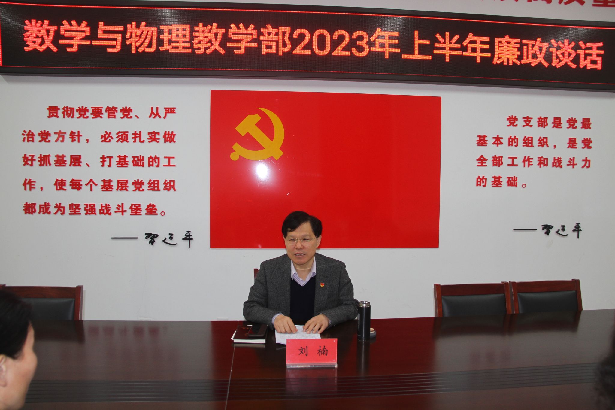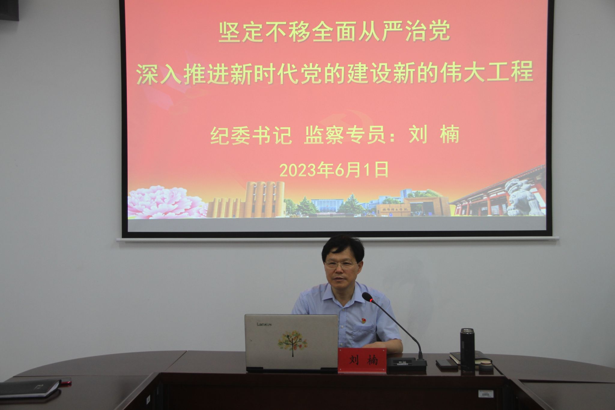 6月1日下午,校纪委书记、监察专员刘楠在图书馆917会议室为数学与物理教学部全体教职工讲授全面从严治党专题党课。刘楠以《坚定不移全面从严治党,深入推进新时代党的建设新的伟大工程》为题,从“坚持和加强党中央集中统一领导”“坚持不懈用习近平新时代中国特色社会主义凝心铸魂”“完善党的自我革命制度规范体系”“建设堪当民族复兴重任的高素质干部队伍”“增强党的政治功能和组织功能”“坚持以严的基调强化正风肃纪”“...