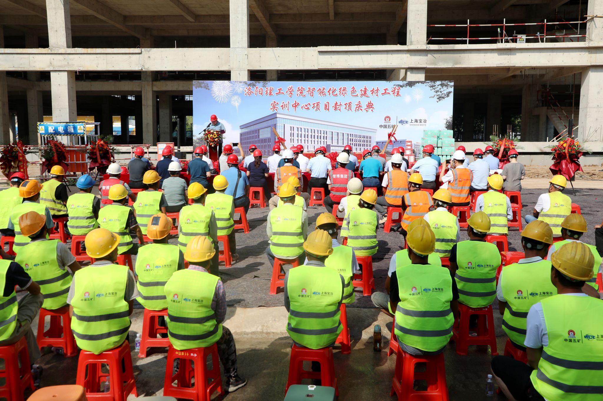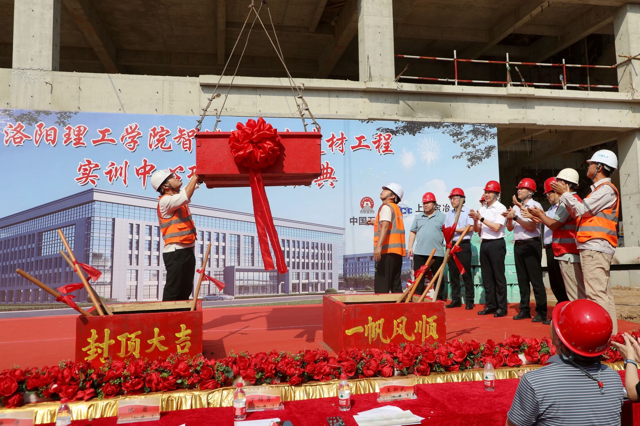 9月3日上午,美高梅娱乐场 智能化绿色建材工程实训中心主体封顶仪式在王城校区举行。校领导陈岩、曾涛、丁梧秀、刘楠、王新武出席仪式,美高梅娱乐场 相关职能部门和工科院(部)负责人,施工单位、监理单位、咨询公司等参建单位相关负责人及兄弟院校嘉宾参加仪式。