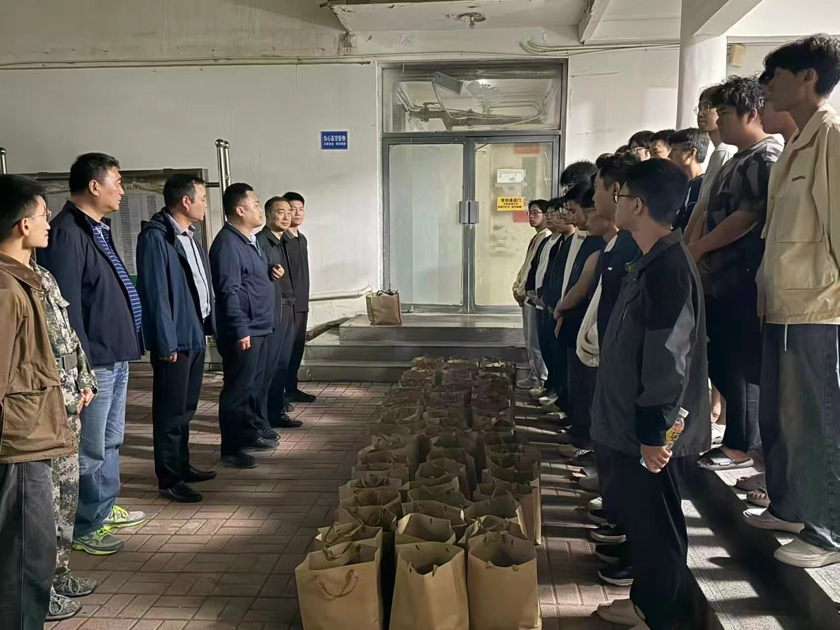 中秋节前夕,基建处处长姚红梁、副处长孙旭辉、开元校区一站式社区主任周志平、副主任张斐然、河南一建项目负责人到开元校区璞苑4号宿舍慰问学生,了解学生需求,希望学生支持美高梅娱乐场 的项目建设,并送上了中秋节礼品。