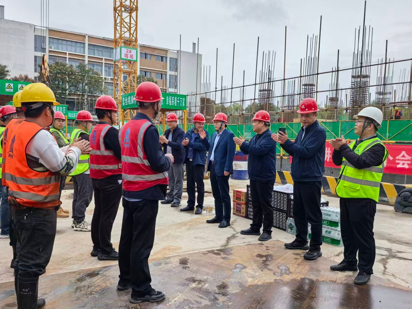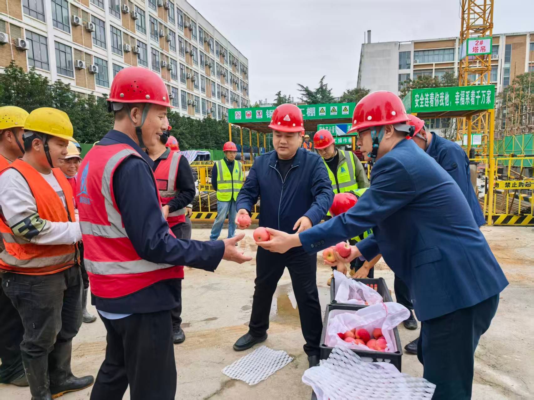 2025年10月6日,在中秋佳节来临之际,李传锋副校长带领基建处、开元校区管委会等相关职能部门负责同志深入开元校区璞苑5号学生宿舍项目工地,慰问假期坚守施工一线的工程建设者,为200余名坚守岗位的施工人员送上节日的祝福和暖心的月饼、水果等物品。