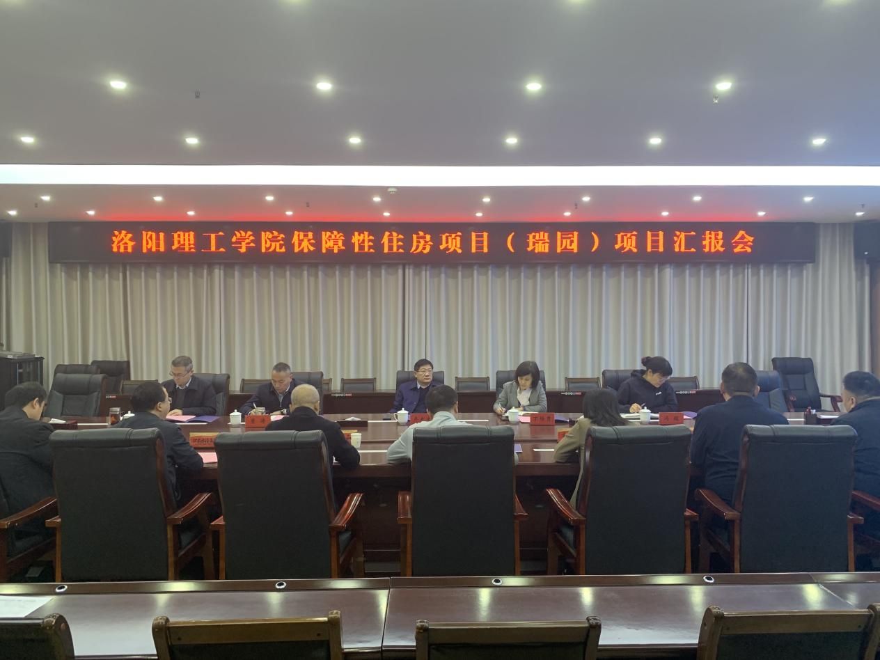 在王城校区行政楼116会议室召开高层次人才住房项目(瑞园)专题汇报会。校党委书记卢志文、校长丁梧秀、党委副书记曾涛、副校长冯超、副校长李传锋,人事处、财务处、审计处、国资处、保卫处、基建处、后勤处、校工会负责同志参会;河南建设集团、中成集团、智博设计院等单位项目负责同志参会,会议由副校长李传锋主持。