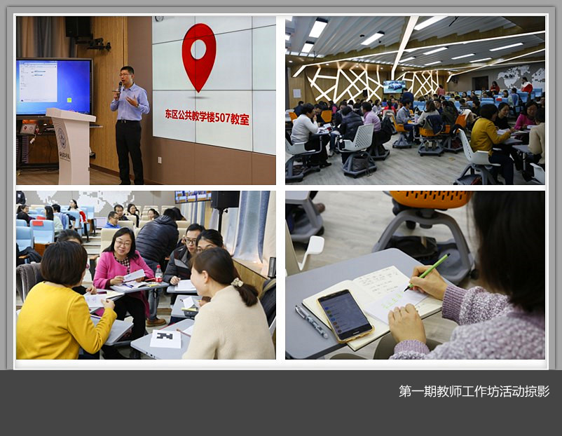 揭牌仪式后,在李蒙教授的主持下开始了第一期教师工作坊活动,从角色扮演、破冰训练、教学实践几个环节组织实施并进行演示,通过资源与教学设计结合来提高“教学效率”,通过信息化手段开展多元化的教学评价来获取“教学过程数据”,从而使教师有更多的时间关注学生学习过程,真正落实以学生为中心的教学理念。教师们热情高涨、主动积极,活动结束后纷纷表示期待参与后面四期的“教师工作坊”活动,共同推进课堂教学模式的改革。