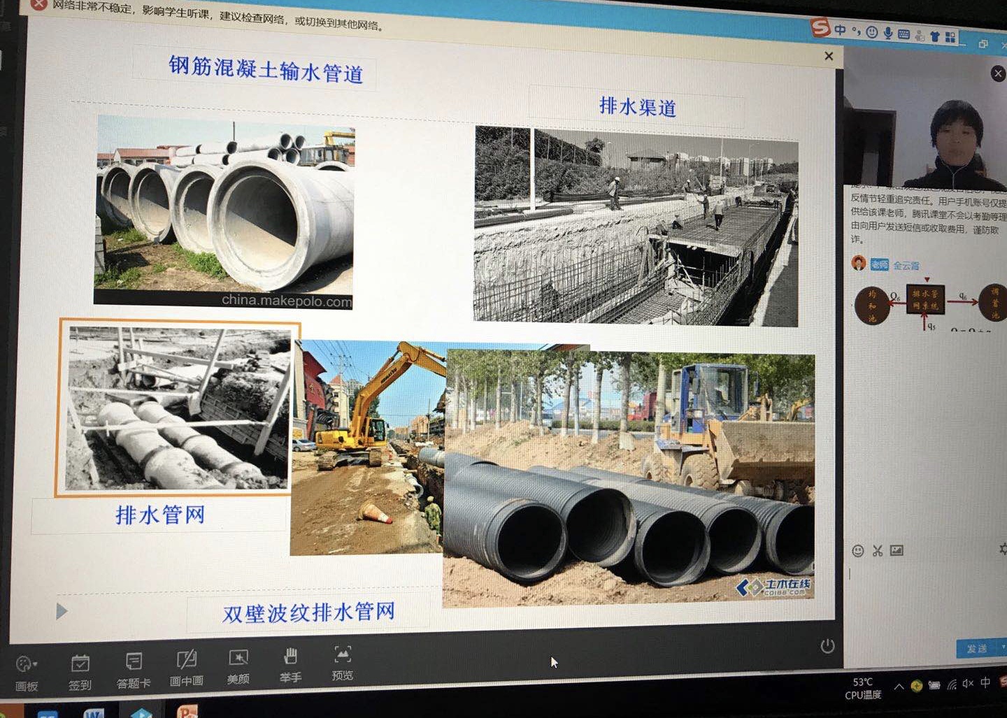 开学前详细学习了超星学习通线上教学平台的功能,任务点发放、资料库、作业库等简单易用,但是超星学习通平台使用人数太多,拥堵严重,高峰期教师和学生均难以登录,且学习通直播平台互动功能稍弱。雨课堂、钉钉、腾讯课堂直播互动功能较好,但雨课堂、钉钉仍然拥堵严重,因此选择课堂容纳人数上限10万的腾讯课堂作为直播课堂。并在超星学习通平台建立了《给水排水管网工程》课程,章节目录以及每一小节的任务点,上传了每一个任务点所关联的PPT、好大学在线课程视频,课后测验题,项目训练题,并建立了资料库等。