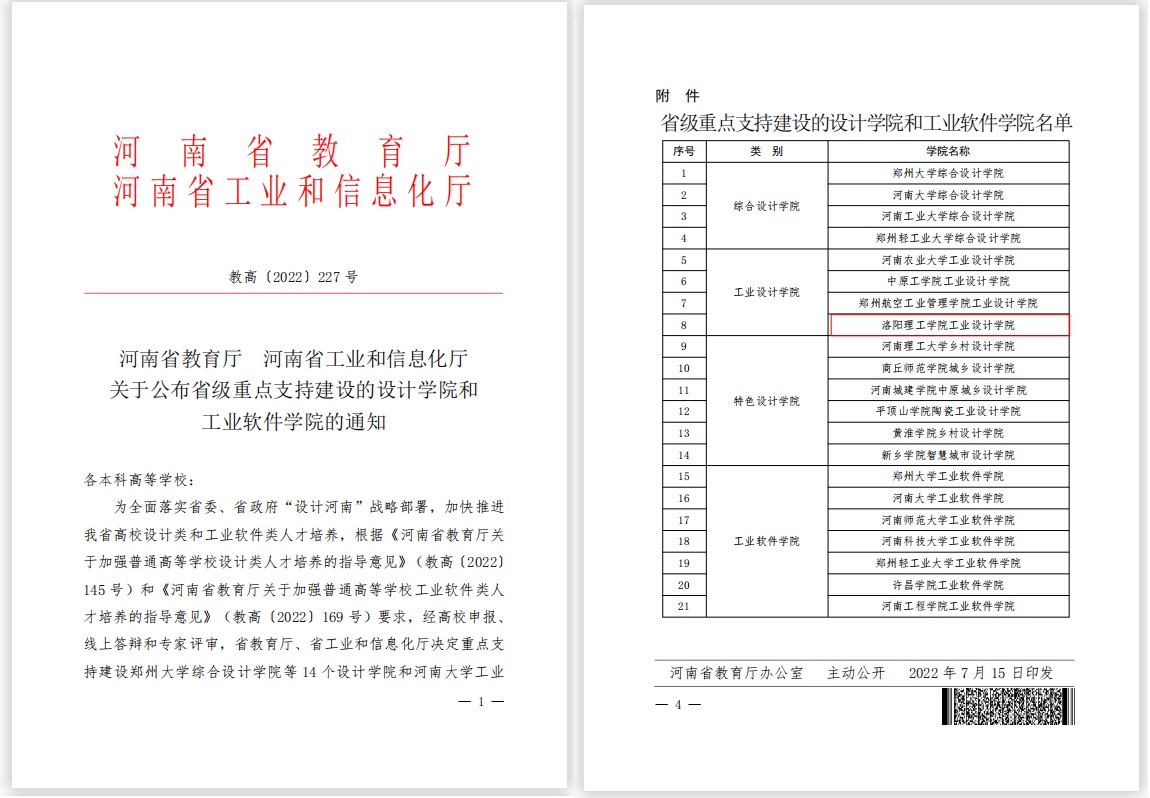 近日,河南省教育厅、河南省工业和信息化厅公布了2022年度河南省重点支持建设的设计美高梅娱乐场 和工业软件美高梅娱乐场 建设名单,美高梅娱乐场 成功获批省级重点工业设计美高梅娱乐场 立项建设单位。