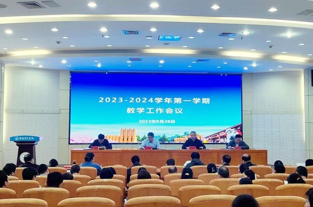 2023-2024学年第一学期教学工作会议在王城校区办公楼二楼报告厅召开。副校长王新武主持会议并讲话,教务处、教学质量监控与评估中心、实验室建设与设备管理办公室负责人,各二级教美高梅娱乐场