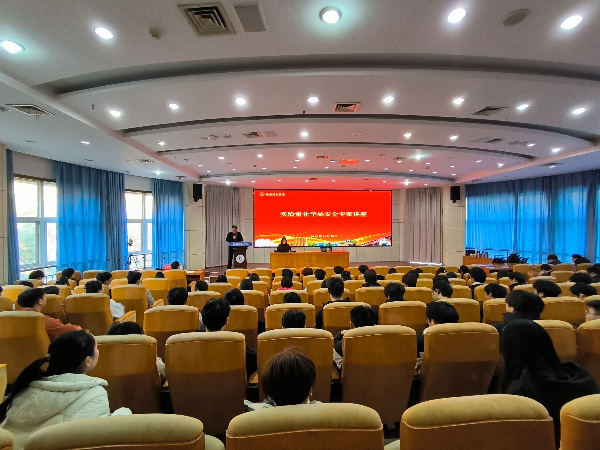 胡婷婷主任围绕“高校实验室危化品安全”这一核心主题,从实验室安全的重要意义、危险化学品的规范使用与科学防护、准确辨识实验室潜在风险以及如何系统落实实验室安全管理工作等四个方面展开阐述。整场报告内容翔实、案例生动,既是一堂专业的实验室安全知识普及课,也是一次深刻的安全警示教育,为在场师生提供了宝贵的理论指导和实践参考。