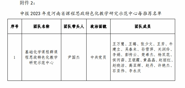 化教学研究示范中心”申报2023年度河南省课程思政特色化教学研究示范中心,现将推荐结果予以公示。