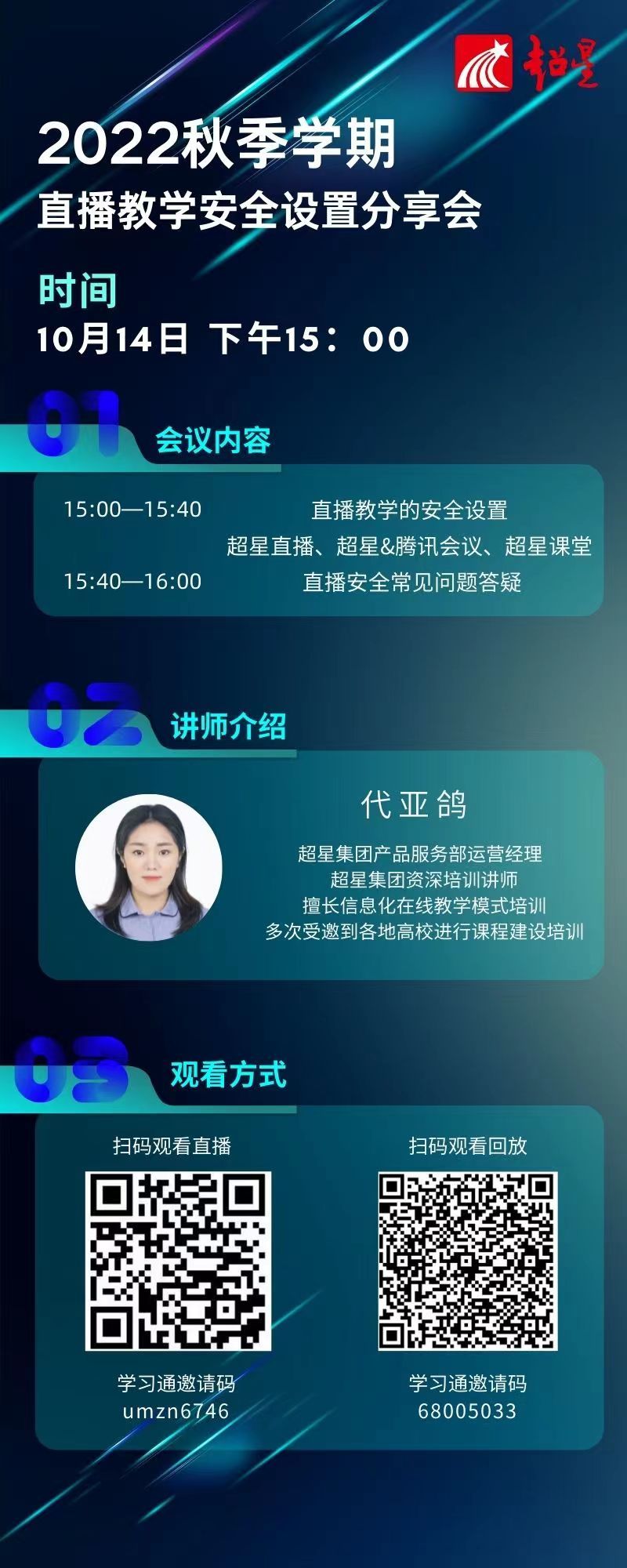 为了进一步做好美高梅娱乐场 直播教学工作,提升教师网络安全意识及能力,提高学生撰写毕业论文(设计)水平,定于2022年13日及14日分别举办直播教学安全设置和撰写毕业论文(设计)讲座,具体安排如下: