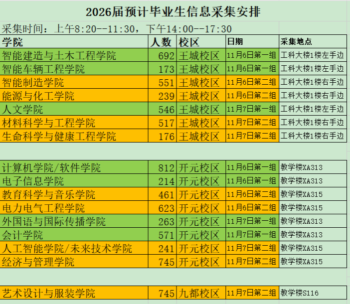 2026年预计毕业生图像采集工作于本学期开展,采集时间为:11月6-7日。