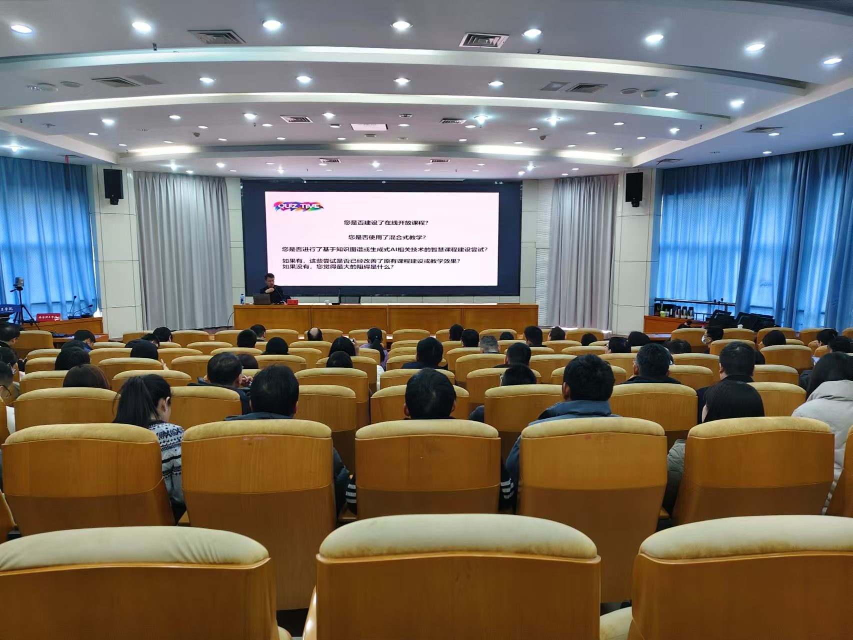 12月6日下午,由教务处主办的“智慧+”教师数字素养提升系列专题的首场培训在美高梅娱乐场 行政楼学术报告厅举行,本次专题以“知识图谱赋能一流课程建设和教学创新”为主题,邀请湖南大学刘强教授作专题分享。共有来自校内15个教学单位109名教师参与,本次培训由教务