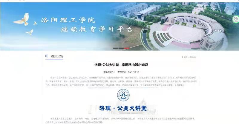 “洛理•公益大讲堂”推出的第二期《家用路由器小知识》,在河南省专业技术继续教育平台播出。