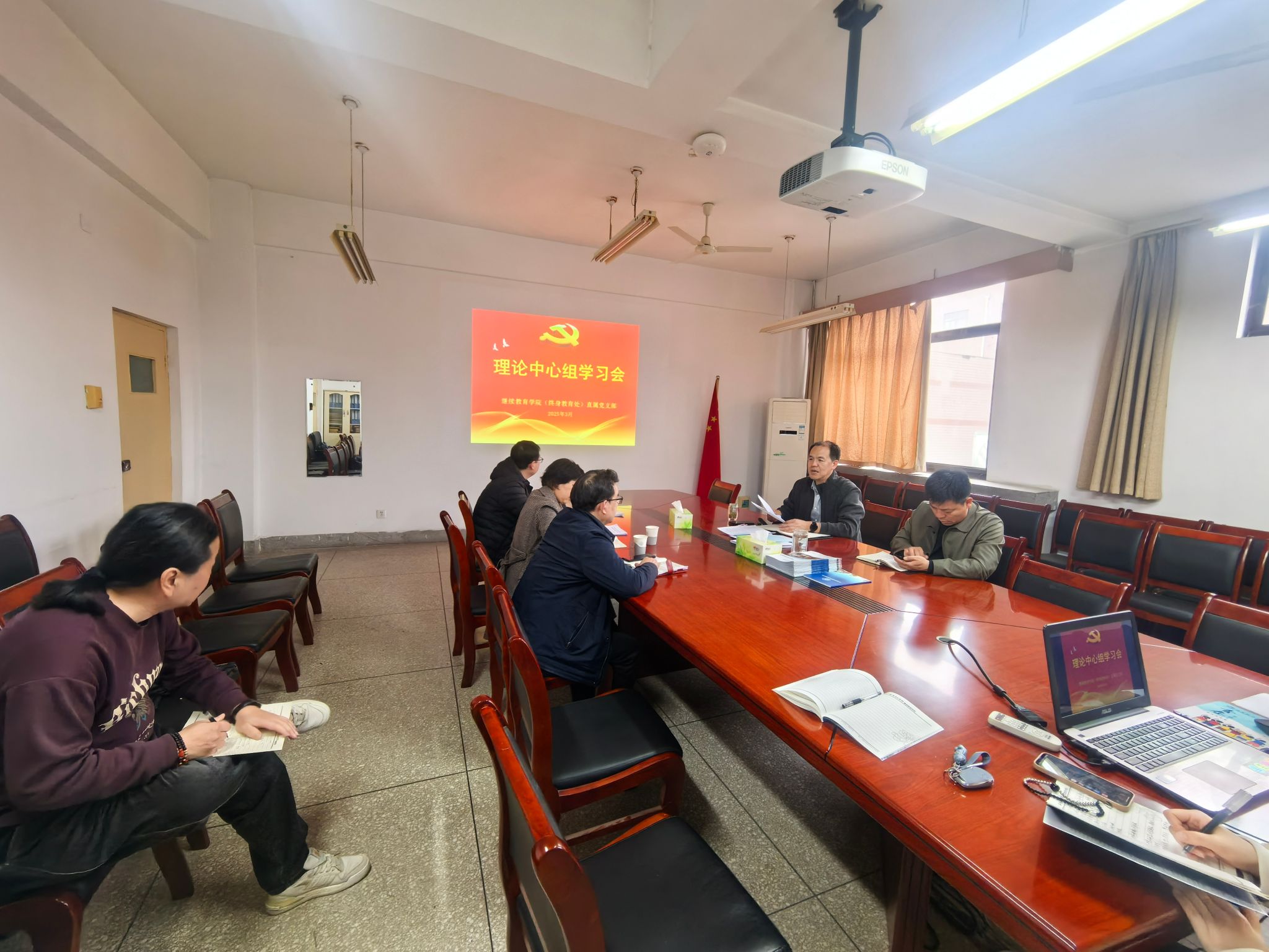 (终身教育处)全体领导班子成员和各科室负责同志参加了会议。会议由直属党支部书记柴玉强主持。
