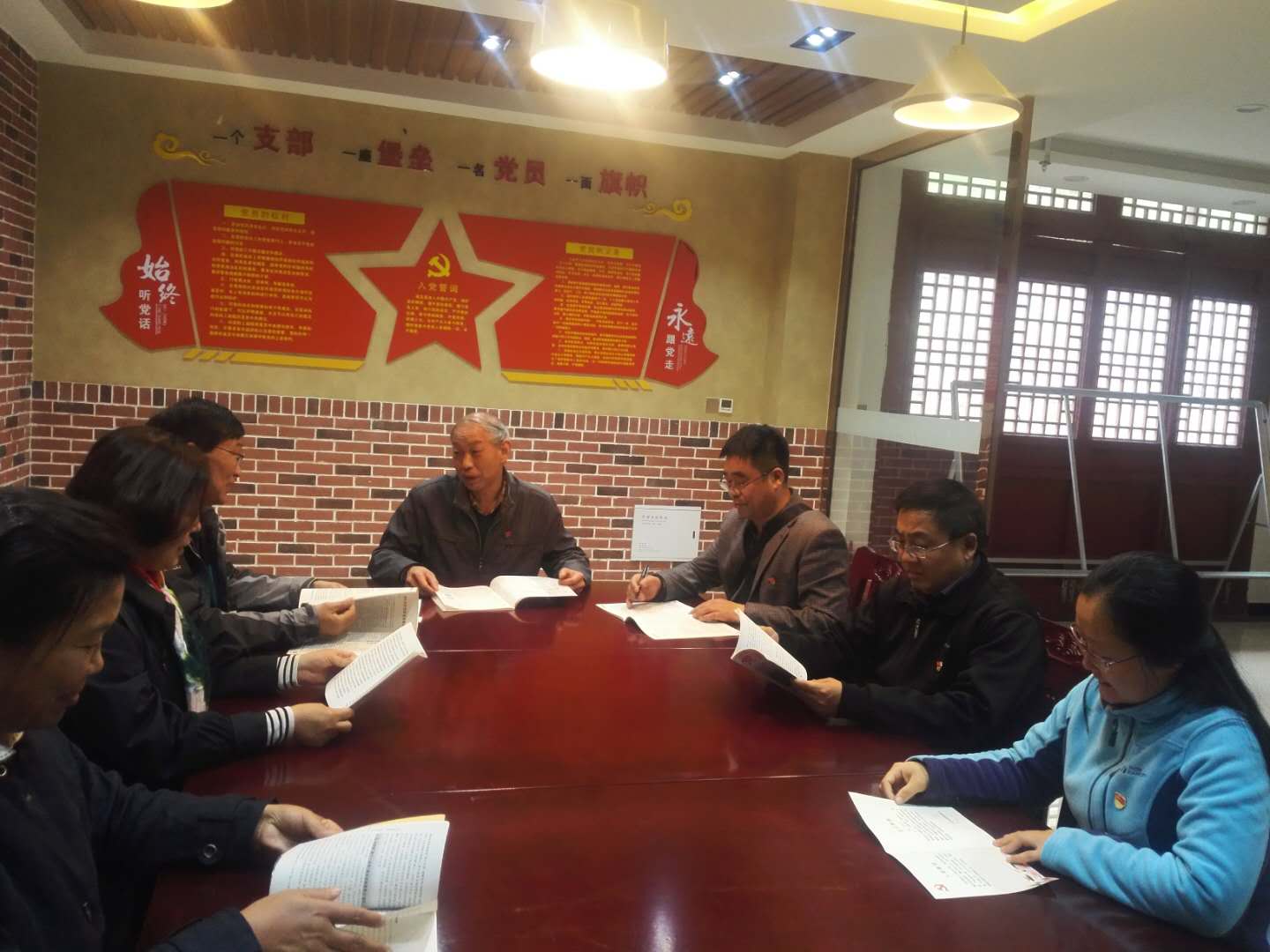 全体党员在革命遗址,面向鲜艳的党旗庄严向党宣誓。从思想和心灵深处都又受到了一次洗礼和净化。