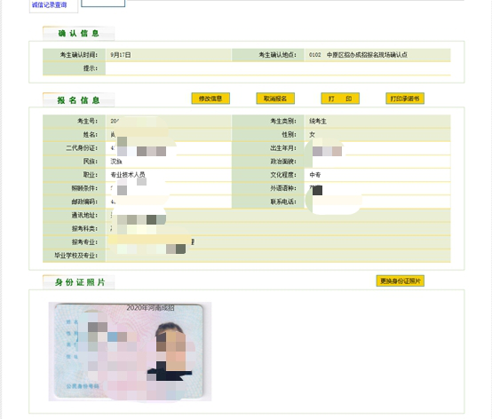 2020年河南省成人高校招生考试,考生自行打印准考证。10 月 19 日至 10 月 25 日,考生访问“河南省招生办公室网站(//www.heao.gov.cn,登录“河南省成人高校招生考生服务平台”按提示要求,关注“河南省招生办公室”微信公众号,并通过个人信息验证后,方可网上打印准考证(A4 纸)。