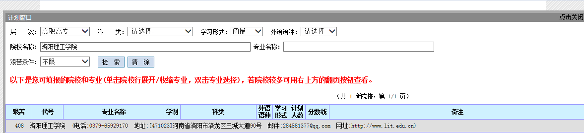 页面显示如图下所示:【直接选择层次和填写院校名称】点击检索即可。