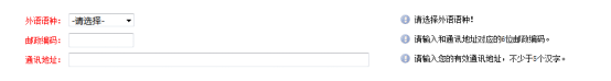 5、选择外语语种“英语”,输入邮政编码和通讯地址后,点击右下角“确定”