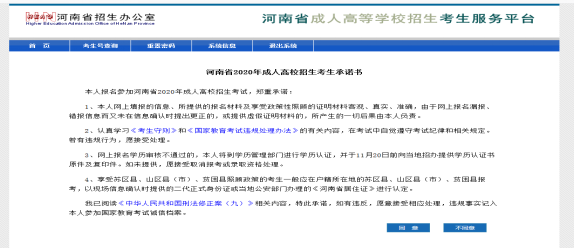 四、阅读“河南省2020成人高校招生考生承诺书”,点击同意(下图)