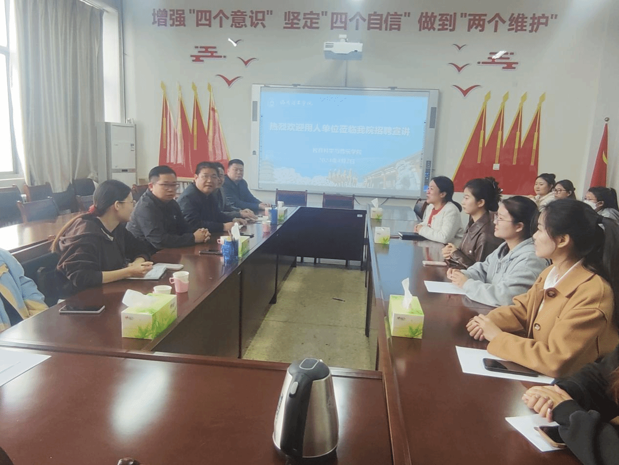 2024年4月2日下午河南电视台洛阳工作站李鑫站长和洛阳市爱立方幼儿园负责人一行莅临美高梅娱乐场 进行现场招聘。教育科学与音乐美高梅娱乐场 院长李文霞和美高梅娱乐场 2024届毕业生代表参加,教育科学与音乐美高梅娱乐场 党委副书记王敏主持。