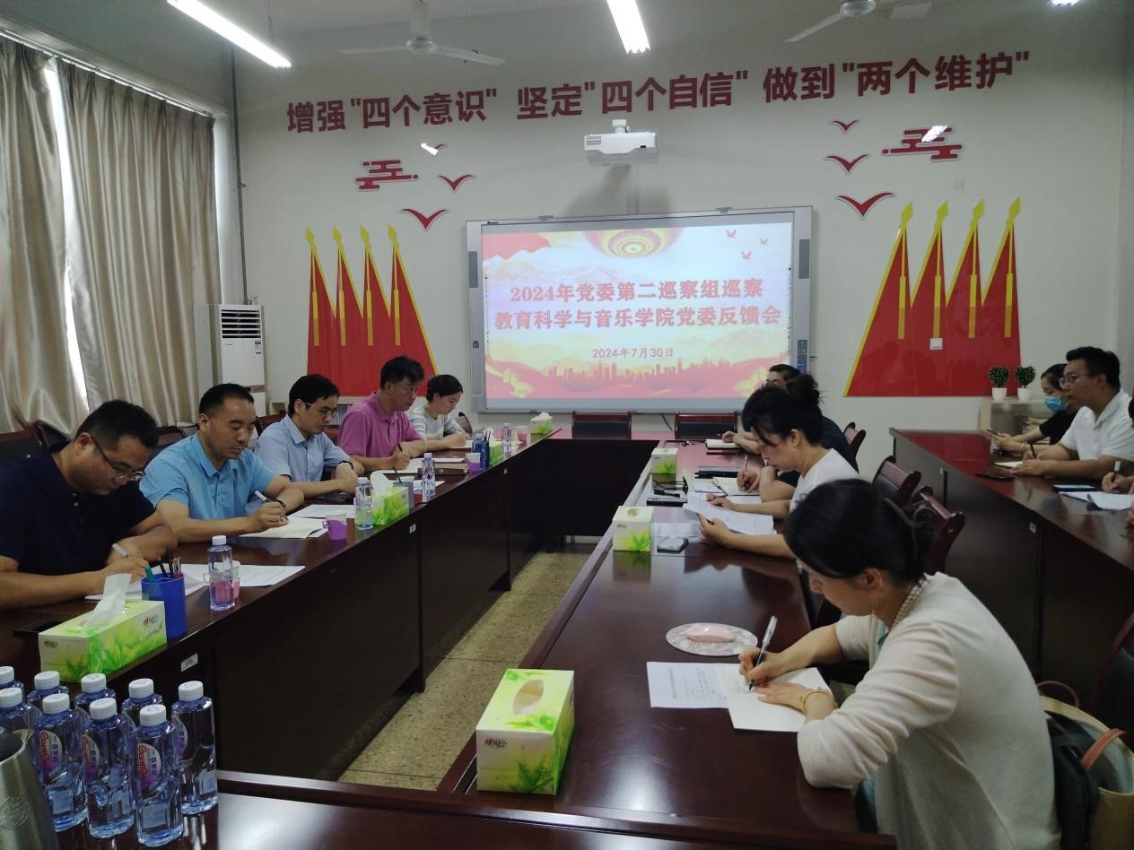 7月30日下午,2024年党委第二巡察组巡察教育科学与音乐美高梅娱乐场 党委反馈会在师范楼406会议室召开。第二巡察组组长戴建广,纪检监察室副主任、巡察工作办公室副主任王继忠,巡察组副组长郭春林,成员任楠、刘培中出席会议。教育科学与音乐美高梅娱乐场 党委班子成员、科级干部、各系负责人和全体辅导员参加了会议。会议由院长李文霞主持。