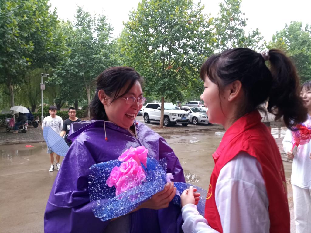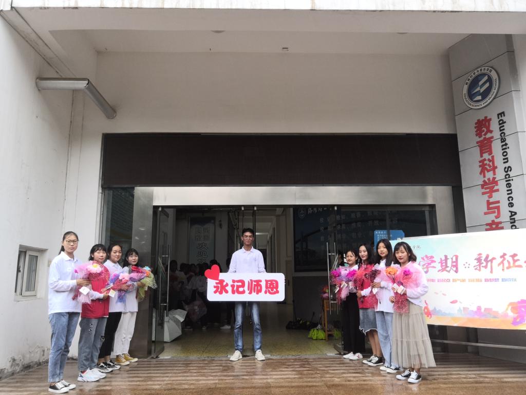9月10日清晨,教育科学与音乐美高梅娱乐场 团委学生会和青年志愿者协会的学生们早早地来到XF楼前,拿着精心准备好的花束和贺卡,等待着为老师送上一份温暖的祝福。