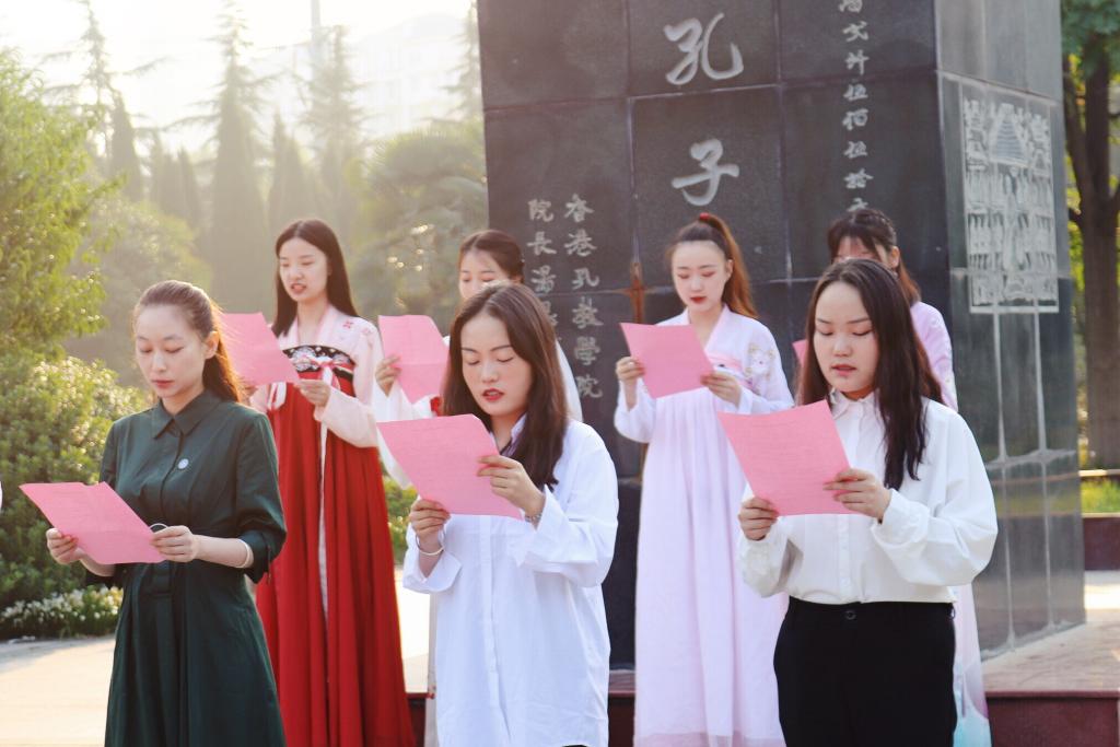 教育科学与音乐美高梅娱乐场 团委副书记宗雪婷老师带领100名学生共同诵读了《论语》和《大学》等经典文献。本次活动旨在根据自身专业,创新学习方式,将“不忘初心、牢记使命”主题教育和孔子诞辰纪念活动相结合,形式生动鲜活,不仅弘扬了我国传统文化,更是有效的传承了民族精神。通过此次活动,师生共同回顾了传统文化经典篇章,提高了传统文化素养。将“学为人师行为世范”的院训落脚到教师、学生日常学习生活,融入到校园文化建设之中。营造出尊师重教和立德树人的良好氛围。为打造美高梅娱乐场 良好和谐的文化环境,推进书香校园建设打下了坚实的基础。