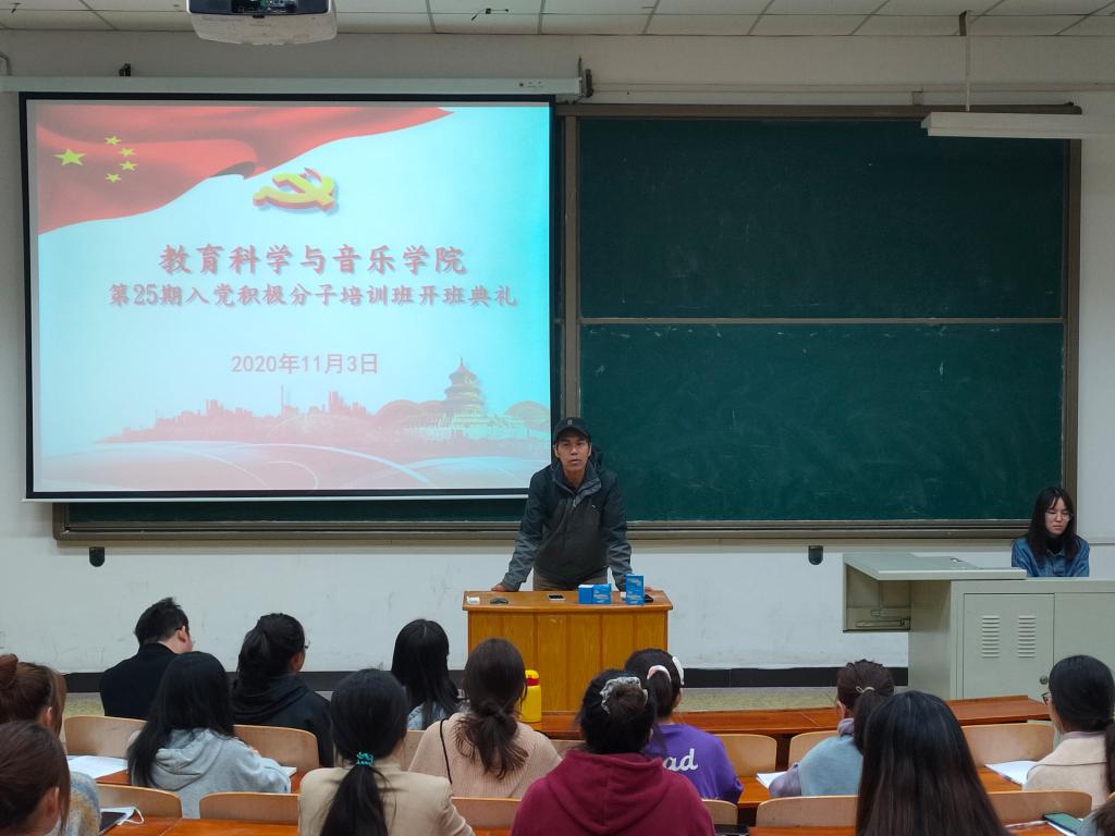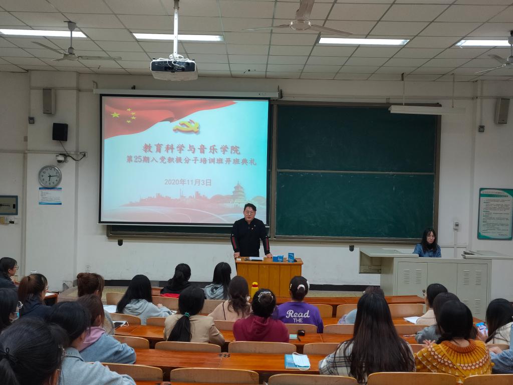 2020年11月3日晚,教育科学与音乐美高梅娱乐场 分党校第25期入党积极分子培训班开班典礼在师范楼304教室隆重举行。教育科学与音乐美高梅娱乐场 党委书记、分党校校长苑成存同志出席会议,并作重要讲话。