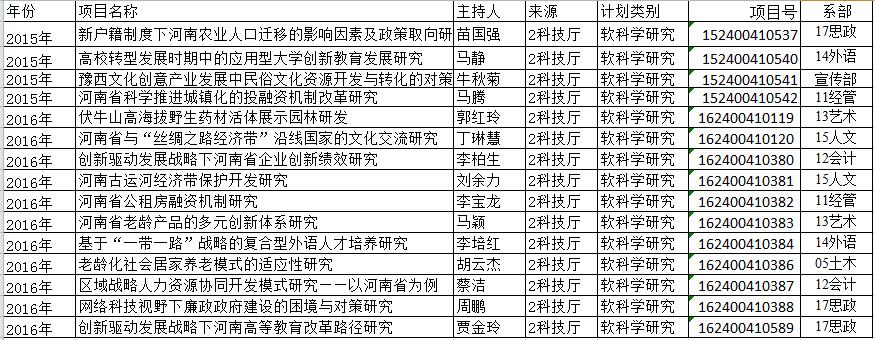(一)2015、2016、2017年度的省软科学研究计划项目。2015年项目今年必须结项,明年科技厅将不再受理。