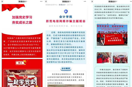 坚持以习近平新时代中国特色社会主义思想为指导,认真组织师生深入贯彻习近平总书记在党史学习教育动员大会、全国脱贫攻坚总结表彰大会、全国抗击新冠肺炎疫情表彰大会上的重要讲话精神,结合“学雷锋”活动和“文明教育月”活动,组织学生在线上和线下积极开展党史学习教育、英模讲座、防范电信诈骗、收看两会、安全防护等活动,坚定理想信念,厚植家国情怀,以奋进姿态开启2021年春季学期新征程,喜迎中国共产党成立100周年。